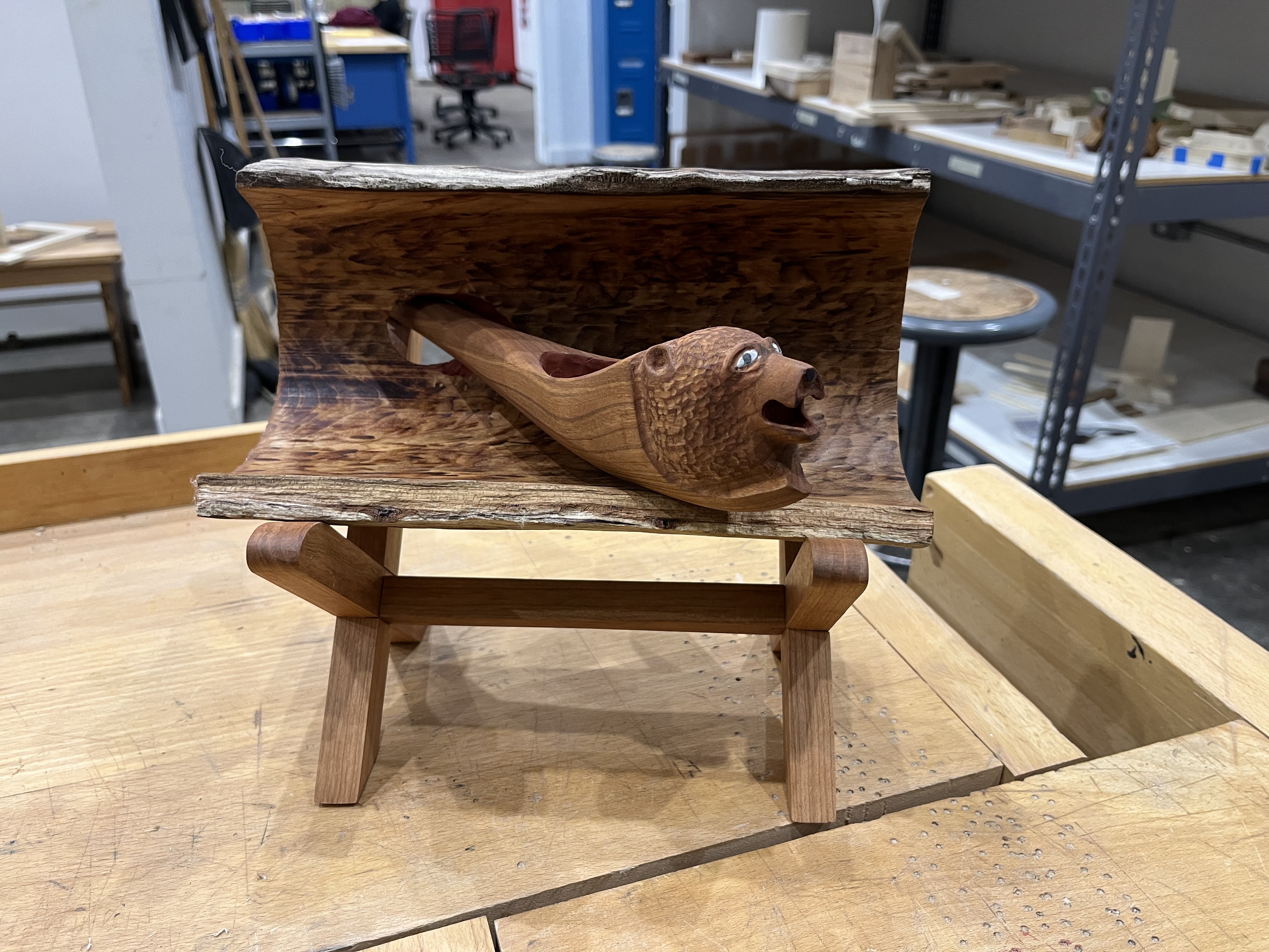 In my furniture design class we were prompted with making a hand carved spoon and a holder that utilized joinary.